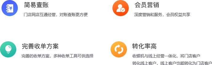 收银机与线上经营一体化,将门店客户转化 线上客户,线上客户也能转化为门店客户